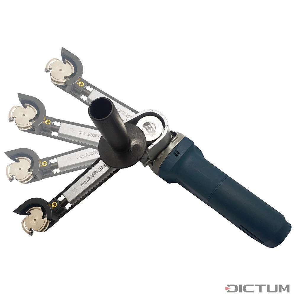 Le Belt Cutter et le Multi Cutter forment le cĆur du systĂšme MANPA Power Carving. Un bras supplĂ©mentaire pour les meuleuses dâangle standard de 115 / 125 mm qui convient Ă presque tous les travaux de sculpture. Le bras peut ĂȘtre Ă©tendu de 200 mm Ă 348 mm, l’angle peut ĂȘtre modifiĂ© de 90Ë Ă 180Ë. DiffĂ©rents disques de fraisage, Ă rĂąper et de meulage de diamĂštre 2 Ă 4 pouces sont idĂ©aux pour une utilisation rapide sur les dispositifs de sculpture Belt Cutter et Multi Cutter de MANPA, sans conversions importantes. Pour un enlĂšvement grossier de matiĂšre, des travaux de prĂ©cision ou un ponçage de finition. GrĂące au Cutter MANPA et Ă ses accessoires, vous pouvez faire face Ă tous les travaux de sculpture, que vous soyez dĂ©butant ou professionnel.