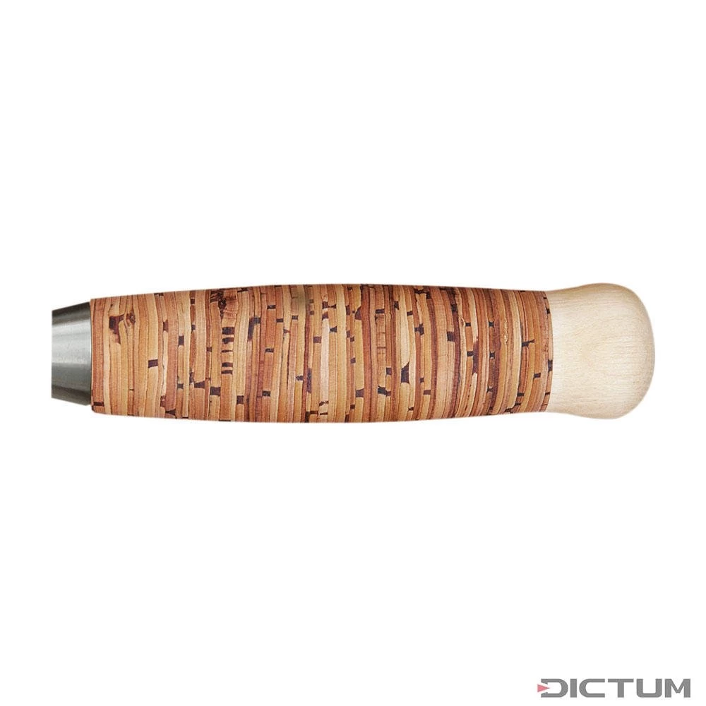 L’écorce de bouleau empêche la formation de champignons et de bactéries, est imperméable, résistante à l’eau et adhérente même mouillée. Même avec des mains qui transpirent, le manche tient bien dans la main. Noyau de poignée en charme. Au raccord avec le manche, bague en acier tournée robuste.