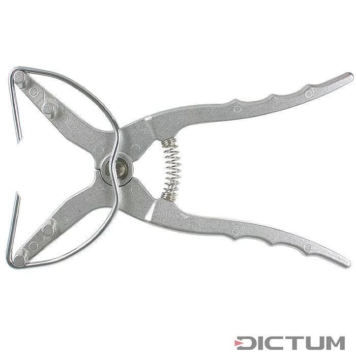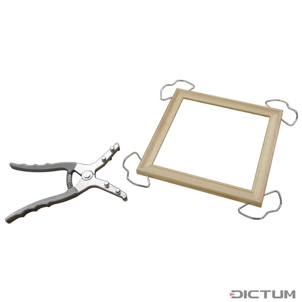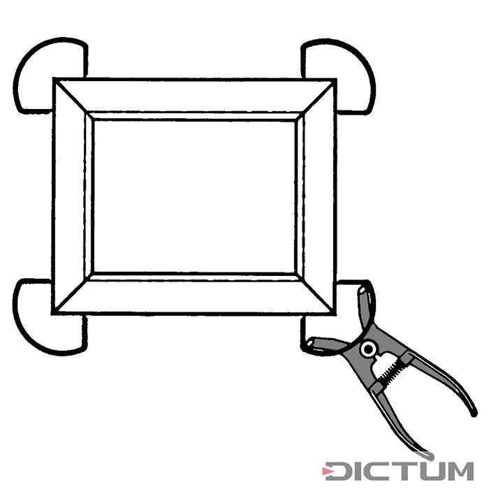 Pince élastique légère pour assembler rapidement et simplement des cadres ou d’autres parties en bois. Le maniement à une main muni d’une pince spéciale fait office de seconde main pour maintenir la pièce à travailler. Les extrémités sont pointues. Pinces en acier à ressort durci. Set de quatre pinces.